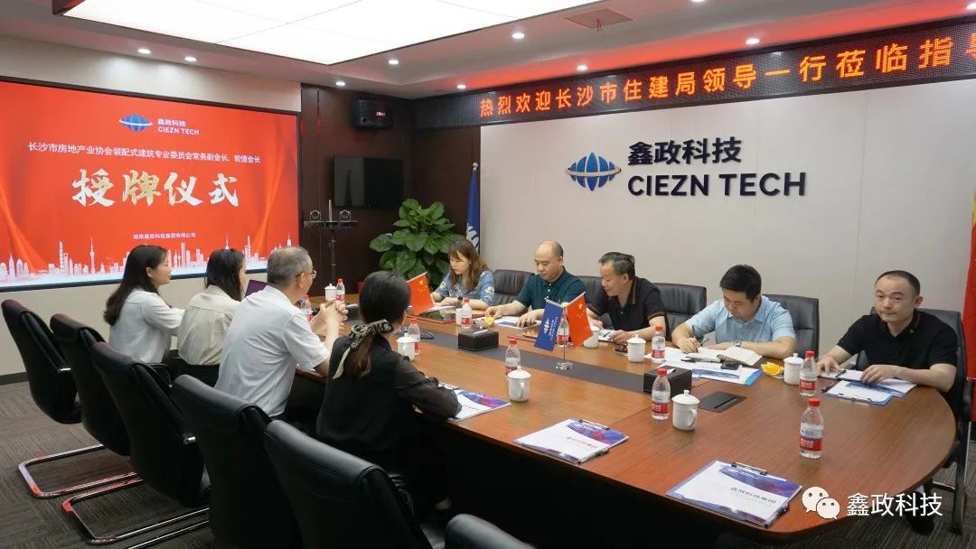 5月13日,授予鑫政科技集團“長沙市裝配式建筑專業委員會常務副會長”、“長沙市裝配式建筑專業委員會輪值會長”牌匾儀式在集團總部1號會議室舉行,長沙市住建局房地產開發處處長高建文、副處長蔣菁,長沙市住建局裝配式建筑促進中心副主任曾敏,長沙市房地產行業協會會長孫谷良,集團副總裁楊三青、總裁助理潘芬芬等領導見證了這一歷史時刻。
