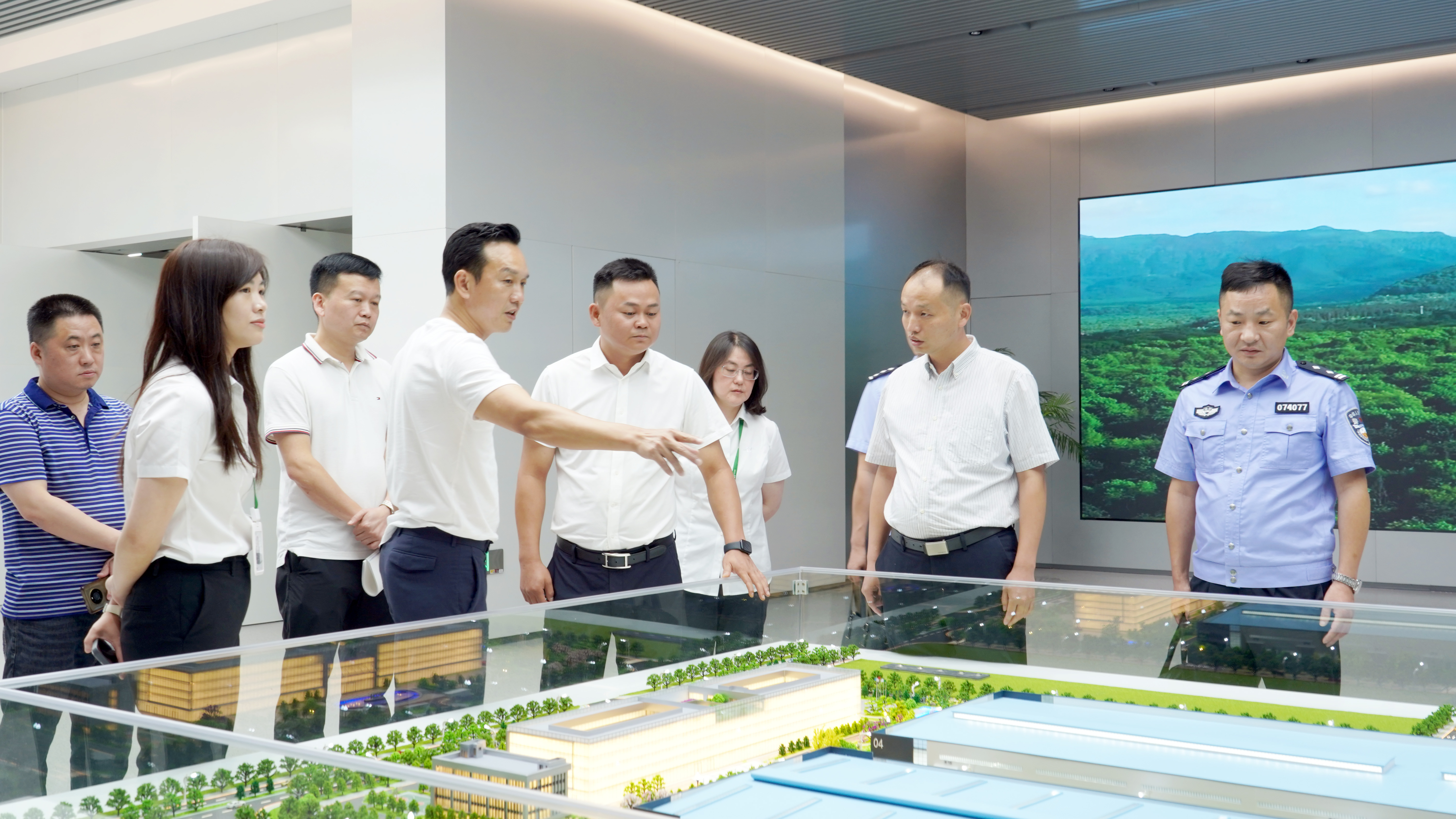 調研組一行深入鑫政數字展廳,實地考察集團在科技創新、成果應用及智能化建設方面取得的進展。