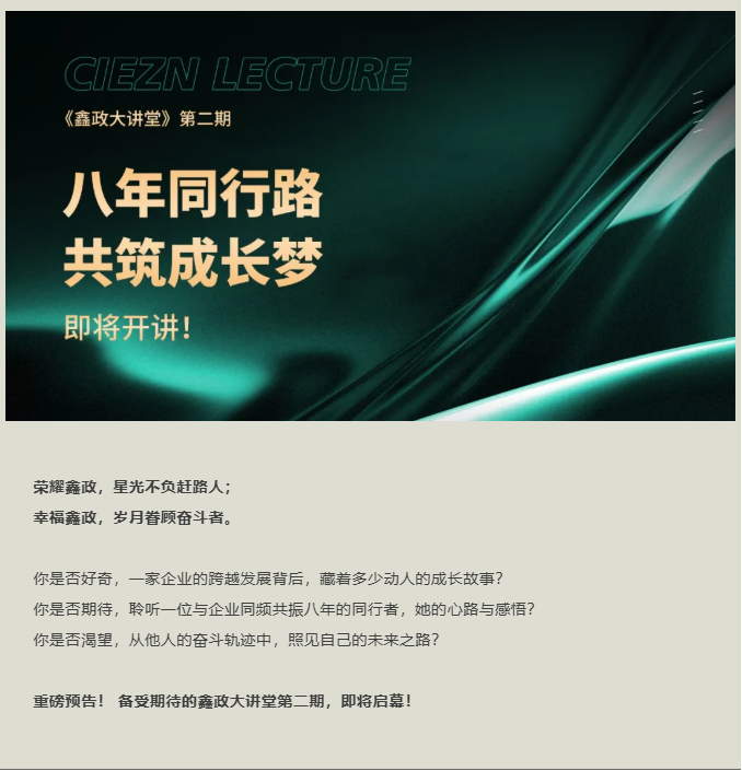鑫政大講堂,不僅是一個(gè)傳遞知識的平臺,更是一個(gè)凝聚文化、共享成長、啟迪未來的舞臺。我們堅(jiān)信,企業(yè)的偉大源于每個(gè)個(gè)體的成長,企業(yè)的榮耀歸于每個(gè)奮斗者的幸福。本期講堂,我們將通過個(gè)人成長洞見公司波瀾壯闊的發(fā)展歷程;通過每一位普通員工的真情流露,感受鑫政大家庭的溫暖底色,詮釋“榮耀鑫政、幸福鑫政” 的深層內(nèi)涵。